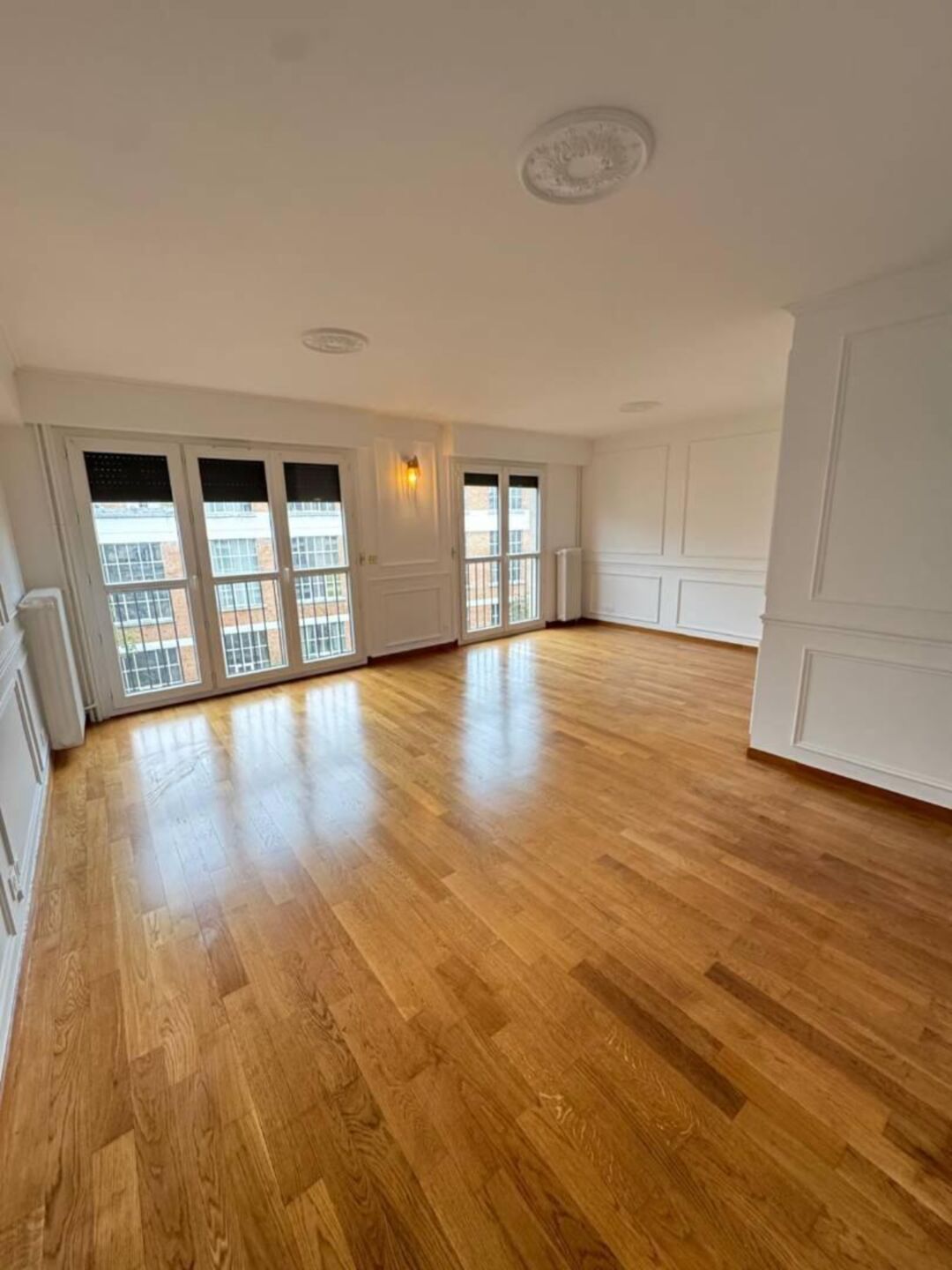 Les travaux ont débuté par une réfection totale des peintures sur les murs, plafonds et boiseries, offrant un rendu uniforme et une atmosphère plus lumineuse. Le parquet existant a été soigneusement poncé puis vitrifié, permettant de restaurer son aspect authentique tout en lui assurant une grande résistance au quotidien.